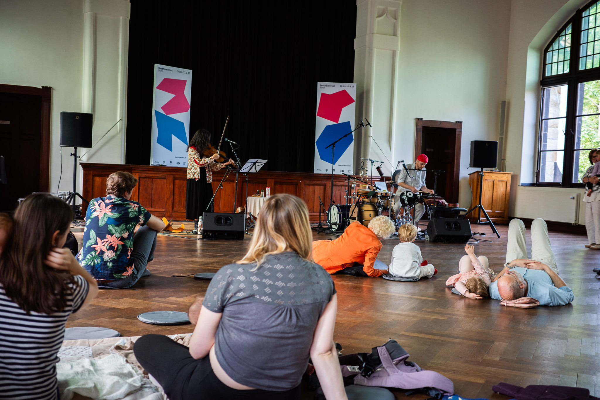 Der Veranstaltungsort ist unbestuhlt – bringen Sie gern Sitzkissen oder Decken mit. Wir sorgen für Rückzugsräume und Wickelmöglichkeiten. Stillsitzen ist keine Pflicht!