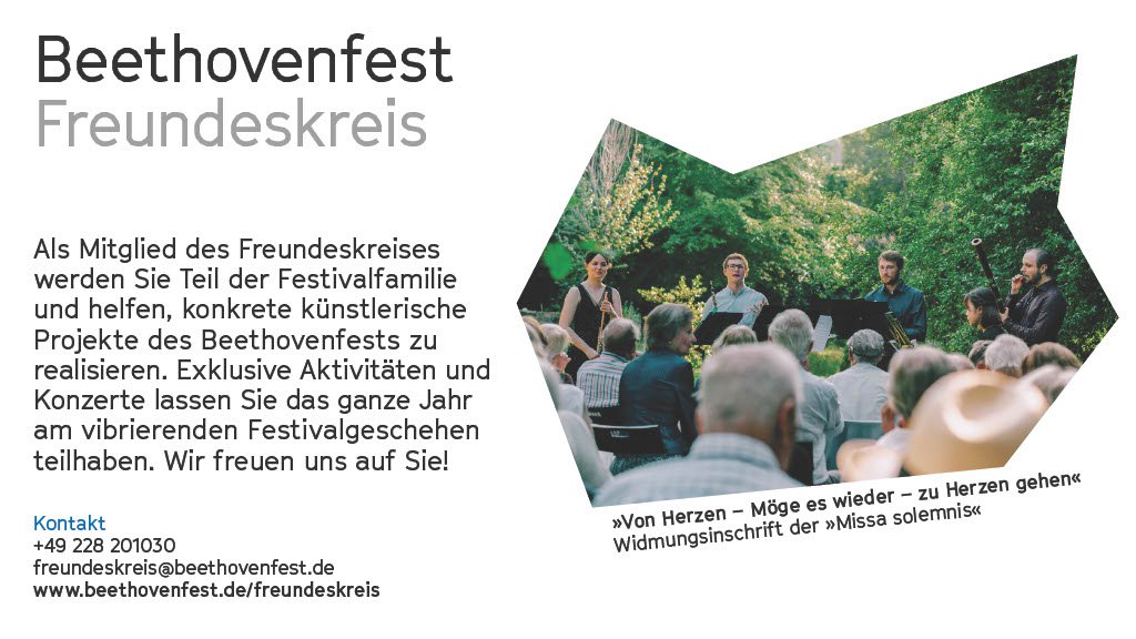 Wir – das Beethovenfest Bonn – laden ein, in einem offenen und respektvollen Miteinander Beethovenfeste zu feiern. Dafür wünschen wir uns Achtsamkeit im Umgang miteinander: vor, hinter und auf der Bühne.