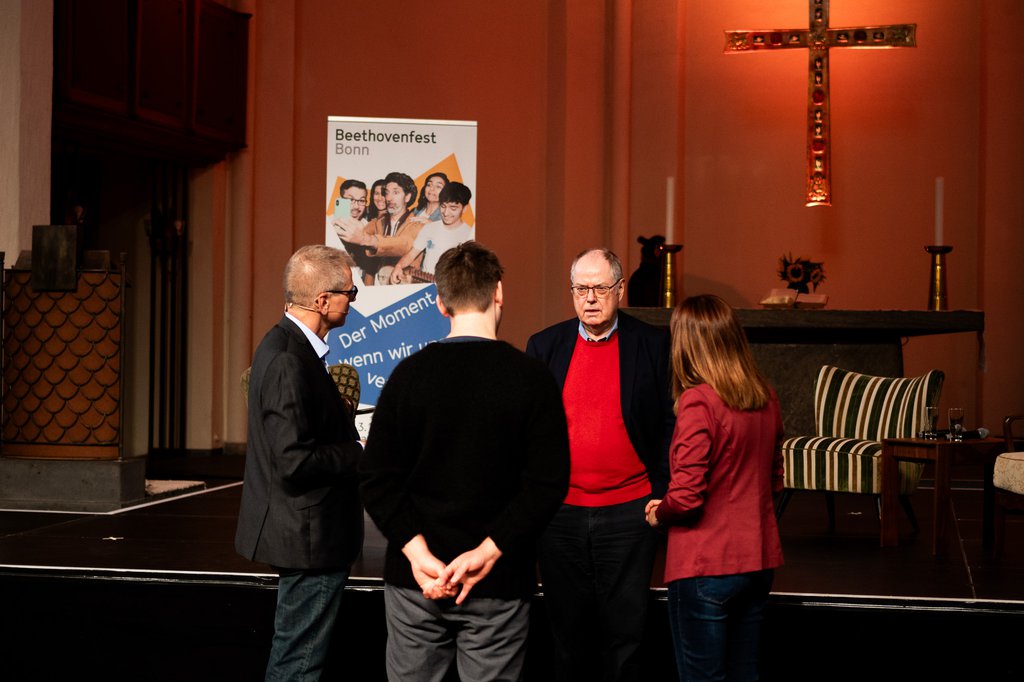 Neben Intendant Steven Walter gab es hochkarätige Gesprächsgäste. Peer Steinbrück, Bundesminister a.D. und ehemaliger Ministerpräsident des Landes NRW, hat über Jahre hinweg eine bedeutende Rolle in den politischen Prozessen unserer Demokratie gespielt und konnte somit aus erster Hand berichten. Dr. Julia Reuschenbach, Politikwissenschaftlerin am Otto-Suhr-Institut für Politikwissenschaft der Freien Universität Berlin, forscht zu Parteien, Wahlen und politischer Kommunikation und ergänzte das Panel ideal. Geleitet wurde das Gespräch von Dr. Helge Matthiesen, Chefredakteur des General-Anzeigers Bonn.