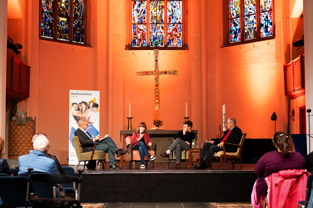Unter dem Motto »Miteinander« rückte das Beethovenfest im letzten Jahr nicht nur die Musik, sondern auch die Demokratie in den Mittelpunkt. Bonn, die Geburtsstadt Beethovens, ist nämlich auch der Entstehungsort unseres Grundgesetzes, und dieses feierte im vergangenen Jahr sein 75. Jubiläum. Zu diesem Anlass organisierten wir neben verschiedenen demokratiefokussierten Veranstaltungen auch das Podiumsdiskussion»Blick in die Glaskugel«. Gesprochen wurde über die Wechselwirkung zwischen Kultur und Demokratie. Besonderer Fokus lag dabei auch auf dem Musikfestival als einem Ort, an dem Menschen sich begegnen und austauschen können.